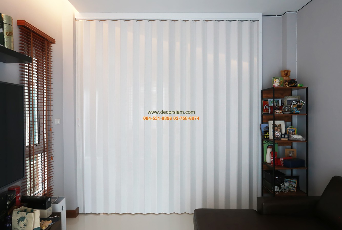 ฉากกั้นห้องทึบ ลักษณะทึบไม่มีช่องแสง สามารถใช้แบ่งห้องเป็นสัดส่วนพับรวบเก็บไว้ด้านข้างได้เมื่อไม่ได้ใช้งานและไม่กินพื้นที่ใช้สอย