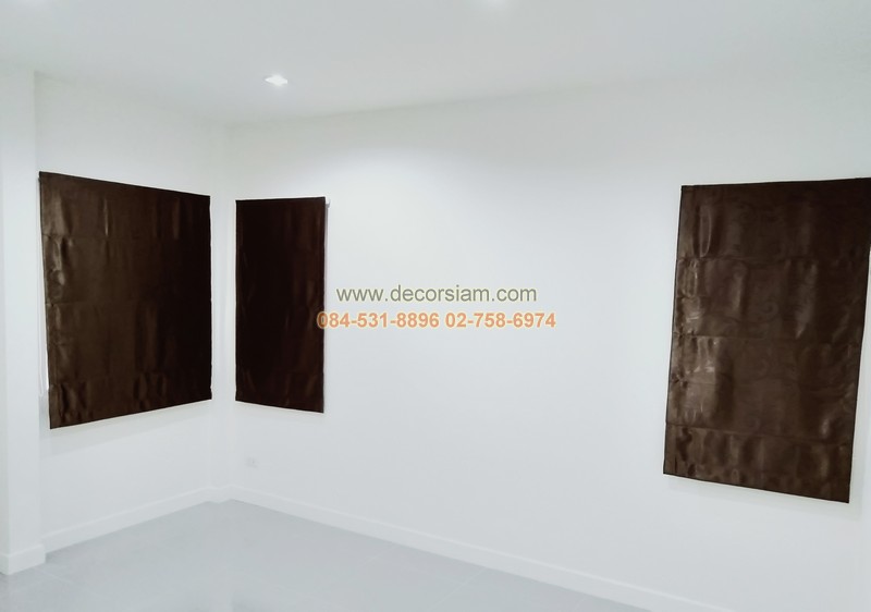 ผลงานตัวอย่างติดม่านพับ เป็นรูปแบบผ้าม่านอีกรูปแบบหนึ่งที่นิยมใช้กัน ลักษณะจะเป็นชั้นทบไปมา เรียงซ้อนกันอยู่ด้านบน ช่วยป้องกันแสงแดดจากภายนอก เหมาะใช้กับการแต่งบ้านในสไตล์เรียบหรู