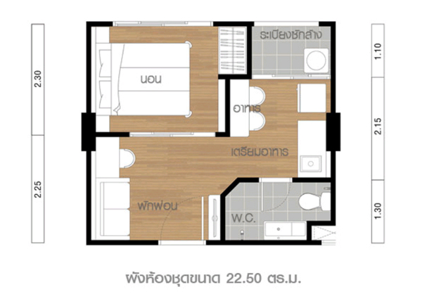 แบบห้องชุดขนาด 22.50 ตร.ม.