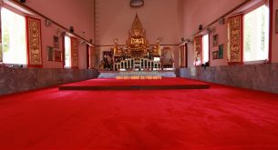 ปูพรมทอ หนา10มม. สีแดงสดที่กาญจนบุรี วัดพระเทพมงคลรังษี