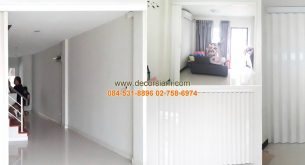 สถานที่ : หมู่บ้าน นครทอง ลิฟวิ่ง ทาวน์โฮม แพรกษา-บางปู บริเวณภายในตัวบ้าน ที่หมู่บ้าน นครทอง ลิฟวิ่ง ย่านแพรกษา-บางปู โดยลูกค้าเลือกใช้ ฉากกั้นห้อง พีวีซี