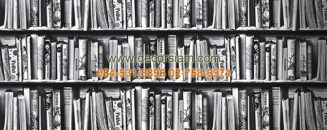 ตัวอย่างผนังห้องตกแต่งด้วยวอลเปเปอร์ ลายชั้นหนังสือ รหัสสินค้า : FEO14-01
