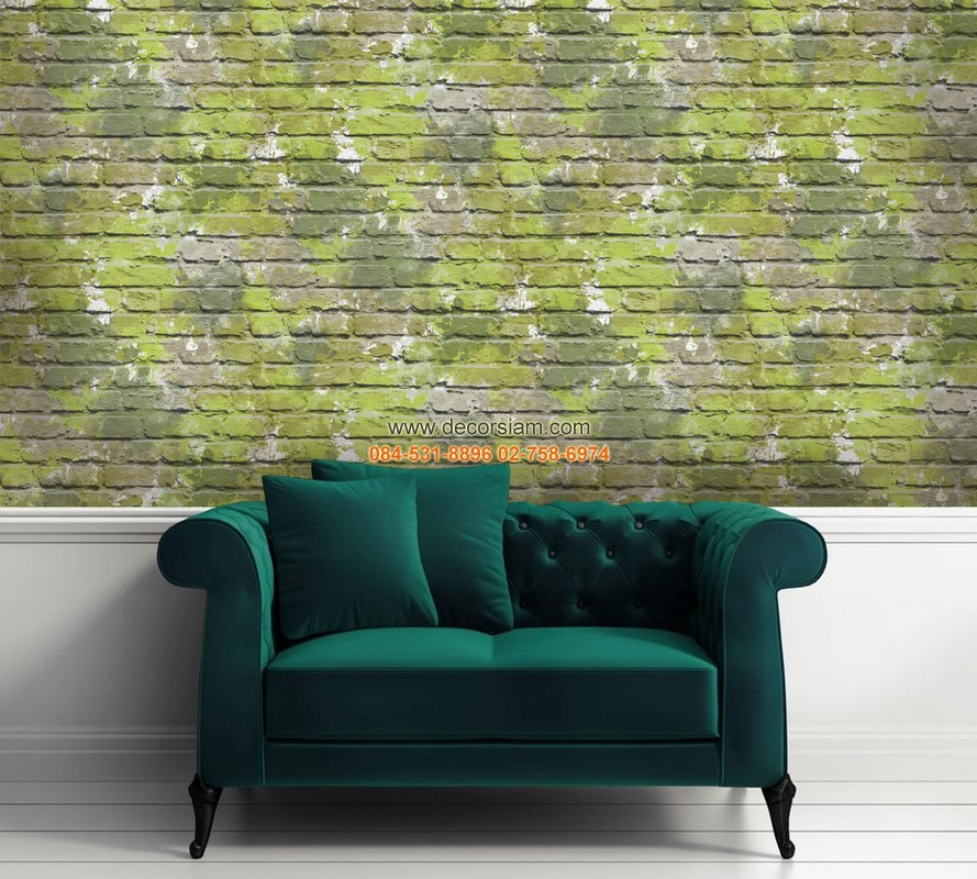 ห้องนั่งเล่นตกแต่งด้วย วอลเปเปอร์ลายGraffiti ลายอิฐ รหัสสินค้า : DFL15-15