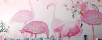 วอลเปเปอร์ใบไม้และนกผนังปูนเปลือย
