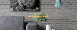 ตัวอย่างผนังห้องตกแต่งด้วย วอลเปเปอร์ลายอิฐ สีเทา รหัสสินค้า : JLT12-08