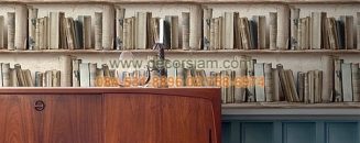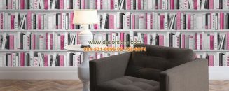 ตัวอย่างห้องตกแต่งด้วย วอลเปเปอร์ลายชั้นหนังสือ สไตล์เรโทร รหัสสินค้า : DIT12-30
