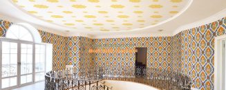 ตัวอย่างห้องตกแต่งด้วย ลายเรือสุพรรณหงส์ สีเหลืองทอง พื้นหลังสีเหลือง รหัสสินค้า : JLE12-09