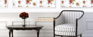ตัวอย่างผนังภายในห้องตกแต่งด้วย วอลเปเปอร์ลายหลุยส์เล็ก สีขาว รหัสสินค้า : FFL14-37