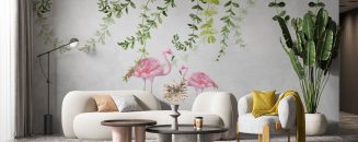 ตัวอย่างภายในห้องนอน ที่ตกแต่งด้วยวอลเปเปอร์ติดผนัง ลายเลขไมล์ พื้นหลังสีขาว