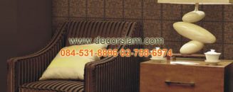 ตัวอย่างผลงานภายในห้องที่ถูกตกแต่งด้วยลวดลายหนังบุ สีน้ำตาล รหัสสินค้า BBEC14-15