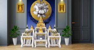 วอลเปเปอร์ลิขสิทธิ์ลายดอกบัวในพระจันทร์ 13 May 2021 1,110 views ตัวอย่างห้องพระที่ตกแต่งด้วยด้วยวอลเปเปอร์สวยๆ เราอยากจะแนะนำวอลเปเปอร์ลายดอกบัวในวงกลมสีทองที่มีพื้นหลังหลากหลายเฉดสีให้เลือก ทำให้ห้องพระมีความเรียบหรูและดูสวยงามมากขึ้น