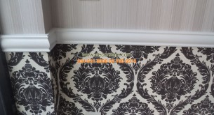 วอลเปเปอร์ติดผนัง ลายหลุยส์ พื้นลวดลายตาราง วอลเปเปอร์นำเข้ามาจากเกาหลี ที่มีขนาด 1.06 x 15.6 = 16 ตรม. ผลิตจากไวนิล หนาทนทาน สามารถเช็ดถูเพื่อทำความสะอาดได้ และลวดลายวอลเปเปอร์ที่ความเป็นสไตล์หลุยส์โดดเด่น