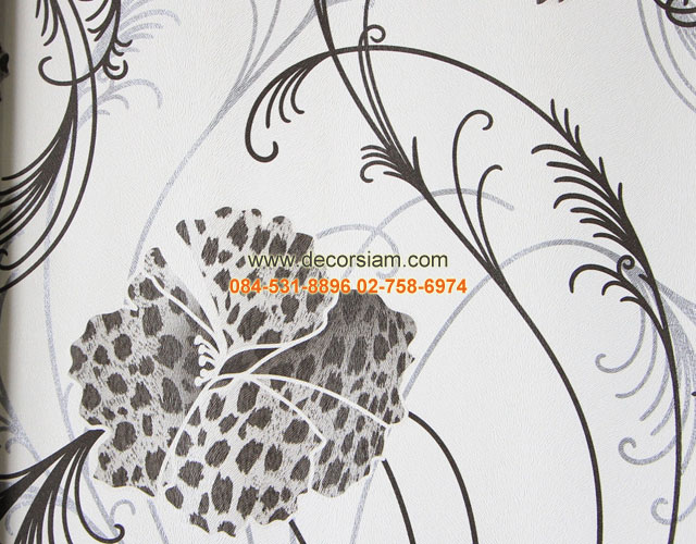 วอลเปเปอร์ลายดอกไม้สีดำเทา พื้นขาว รหัสสินค้า 12MCC-03