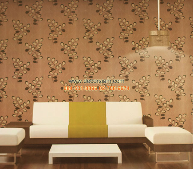 ตัวอย่าง วอลเปเปอร์ติดผนังลายใบไม้ พื้นสีน้ำตาล รหัสสินค้า 12DGP-00
