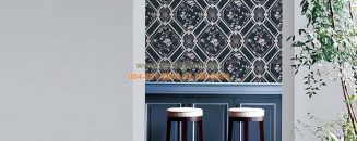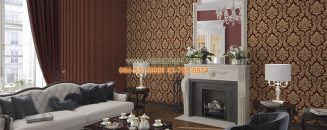 ผลงานตัวอย่างภายในห้องที่ถูกตกแต่งด้วย วอลเปเปอร์ลายต้นไม้ใบไม้ธรรมชาติ สีม่วง รหัสสินค้า : BCHI714-07