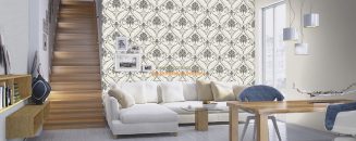 วอลเปเปอร์ติดผนัง ลายหลุยส์ใหญ่ บนพื้นเรียบวงกลม