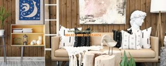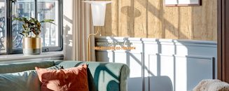 บรรยากาศภายในห้องที่ตกแต่งด้วย ลวดลายแผ่นไม้เก่า สีส้ม รหัสสินค้า : DNR45-20