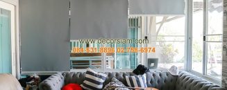 ผลงานติดม่านม้วน สีเทา แบบทึบแสง เพื่อช่วยเพิ่มความเป็นส่วนตัว ป้องกันความร้อนจากแสงแดดด้านนอกไม่ให้บรรยากาศภายในห้องรู้สึกร้อนอบอ้าวจนไม่น่าอยู่