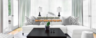 มุมห้องนั่งเล่นที่เลือกใช้ ผ้าม่าน PASAYA รุ่น PEWTER โทน SIVER