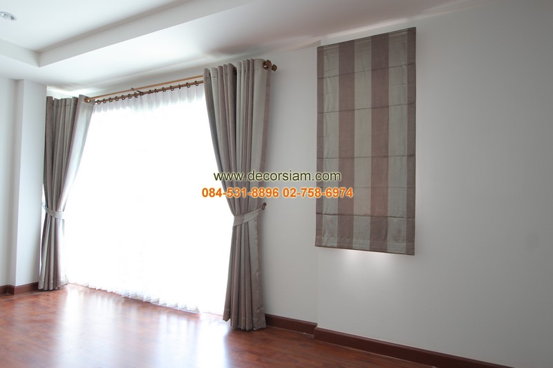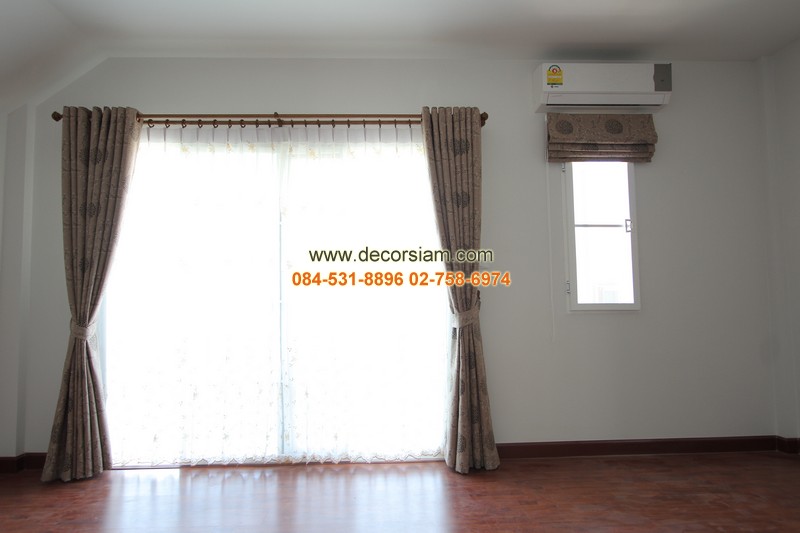 ผ้าม่านของร้าน decorsiam มีหลายรูปแบบให้เลือกสรรค่ะ อย่างรูปนี้จะมีทั้งผ้าม่านตาไก่ และผ้าม่านพับในลวดลายที่เข้าคู่กันเป๊ะ