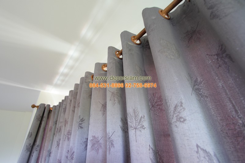 ผลงานแรกสำหรับวันนี้ ร้าน decorsiam ขอนำเสนอผ้าม่านตาไก่สวยๆ ลายใบไม้สีม่วงสุดแสนจะคลาสสิก