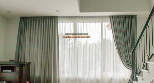 งานตัวอย่างการติดผ้าม่าน UV มุ่ลี่ หมู่บ้านลัดดาวัลย์ ย่านศรีนครินทร์ ด้วยลวดลายและเนื้อผ้าม่าน ที่ติดตั้งบริเวณมุมหน้าต่าง ที่นำมาตกแต่ง เพื่อความสวยงาม ใช้ปกปิดกันแสงแดดไม่ให้เข้ามาภายในตัวห้องเพื่อช่วยกันความร้อนได้ ด้วยผ้าม่านจีบแบบบทึบ ซ้อนกับผ้าม่านจับแบบโปร่ง อีกทั้งยั่งมีมู่ลี่ตกแต่งหน้าต่างเพื่อกันแสงแดด ได้อย่างเข้ากับแบบลงตัวกับผนังภายในห้อง งานตัวอย่างการติดผ้าม่านจีบแบบทึบ